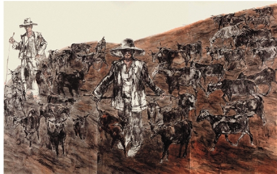 罗江 牧羊人 国画