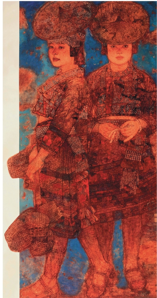 李传真 花腰傣女青年 国画