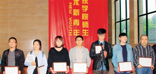 第三届美术新青年10强颁奖现场(部分代表) 郑鹏/摄