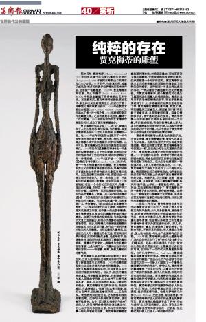 阿尔贝托·贾克梅蒂(Alberto Giacometti)1901年出生在瑞士的边境小镇波尔戈诺沃(Borgonovo),1966年在阿尔卑斯山口的库尔市(chur)去世。19岁那年,他赴意大利,观摩了威尼斯、帕多瓦和佛罗伦萨等地的艺术杰作后,立志做一名雕塑家。1922年,贾克梅蒂来到巴黎,师从布德尔(Emile Antoine Bourdelle),并熟练地掌握了罗丹体系的艺术手法。在巴黎期间,贾克梅蒂开始接触原始艺术、新立体主义及超现实主义,并进行了数十年雕塑之魂的探索与创作。1955年伦敦艺术委员会画廊(Arts Council Gallery, London)为他举办了第一次大型个展,1962年获威尼斯双年展雕塑大奖。之后在欧美各地巡展,赢得了广泛的赞誉。1955年在纽约当代艺术博物馆展览的同时,成立了贾克梅蒂基金会。