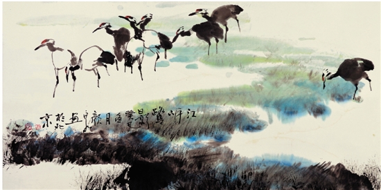 颜泉 江岸鹭影