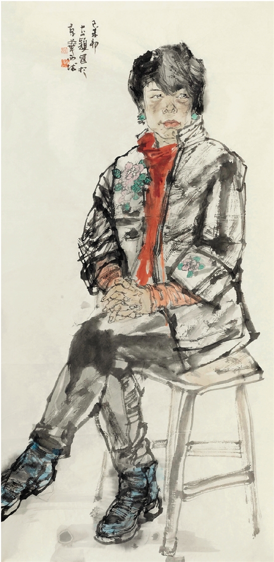 邹立颍 陇南人物写生二 中国画 138×68cm