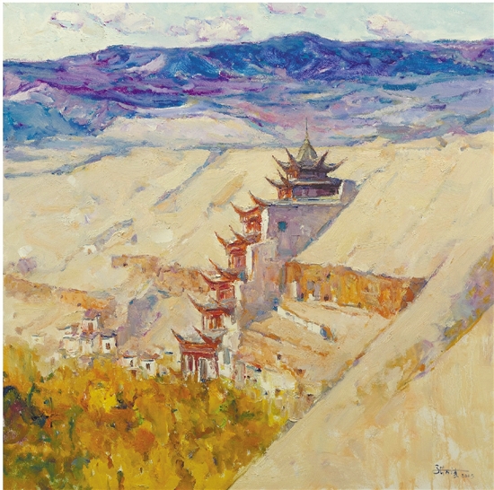 张万凌 丝路明珠——敦煌莫高窟 油画 100×100cm