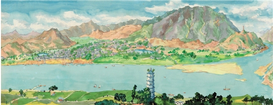 寿崇德 严州鸟瞰 29.5×78cm 1952年