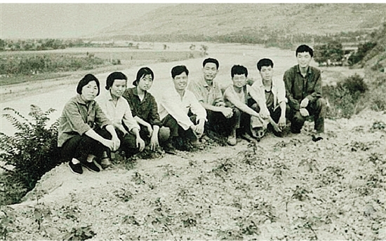 师生与陈忠实在白鹿原下灞河边,左三起为:张小琴、陈忠实、苗重安