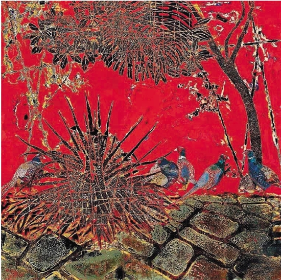 田子厚 五只山鸡 120×120cm
