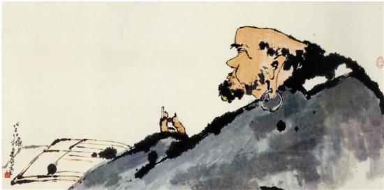 潘天寿 读经僧图 68×136cm 纸本、设色、指墨 1948年