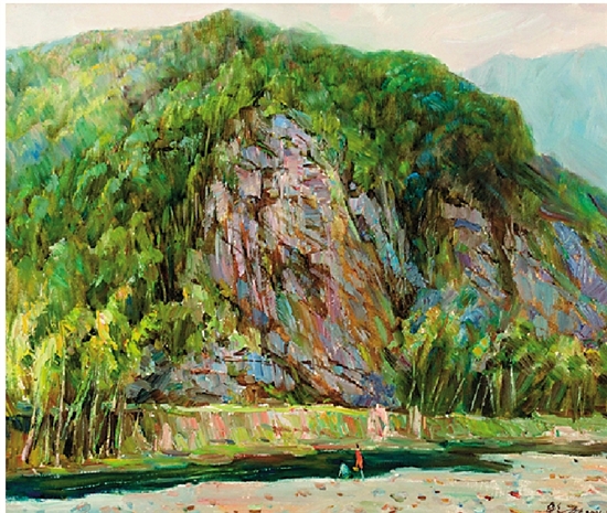 鲍加 山岩竹喧 55×65cm