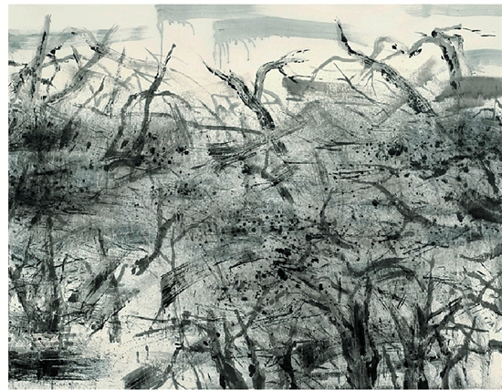 李青 胡杨林 215×275cm 中国画