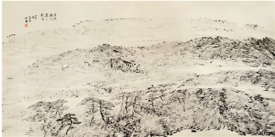 ▲ 邵璞 其大无外 其小无内 68×137cm 焦墨