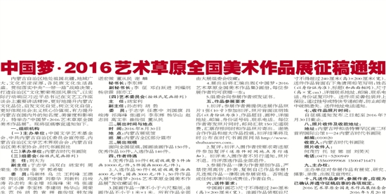 中国梦·2016艺术草原全国美术作品展征稿通知