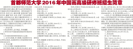 首都师范大学继续教育学院以优良的教学环境和设施为基础,集中社会优质资源举办中国画名师系列高级研修班。研修班坚持“专家引领、传统为本、兼容并蓄、鼓励创新”的教学方针,遵循“传统、生活、创造”三结合的教学原则,采用实践为主、理论为辅的教学形式,以中国画理法、中国画功技训练(写生、临摹、创作)、历代作品分析、中国画发展研究等内容为教学重点,以提高学员创作能力为最终目标。2016年研修班招生工作安排如下: