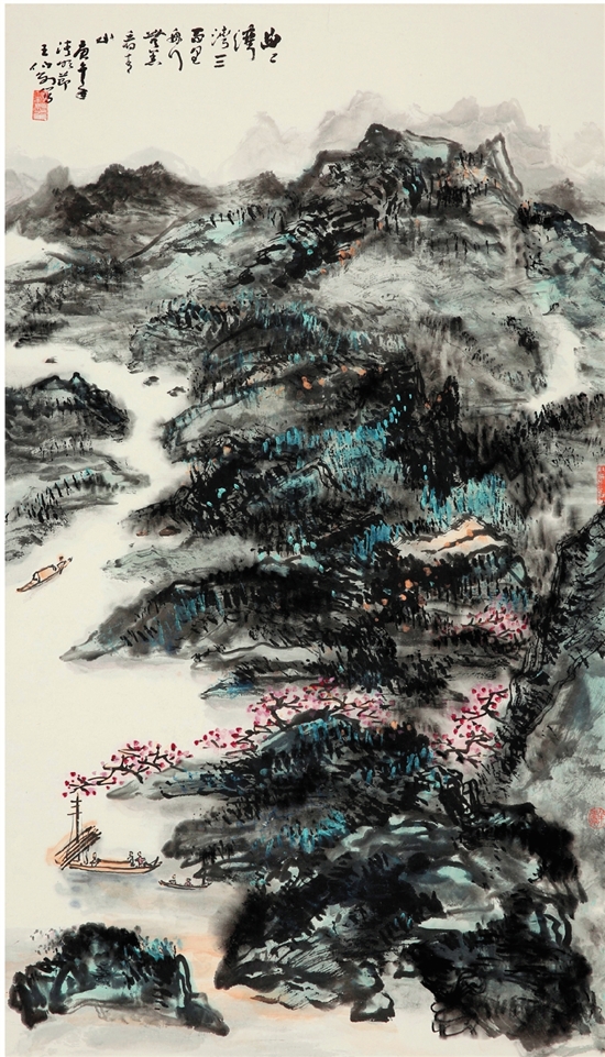 款识:曲曲湾湾三百里,舟行无恙看青山。庚午年清明节王伯敏。