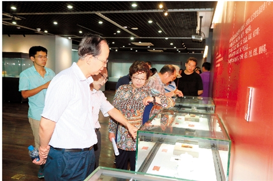 中国艺术研究院中国篆刻艺术院院长骆芃芃陪同中国文联副主席、书记处书记左中一和中国艺术研究院常务副院长吕品田参观展览
