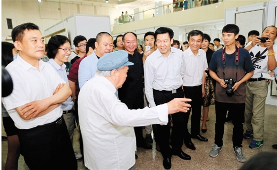 西安美院名誉院长刘文西与庄长兴副省长、王紫贵副厅长参观学生作品