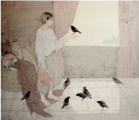 牛聪聪 休憩 国画 127×155cm 指导教师:颜瑜