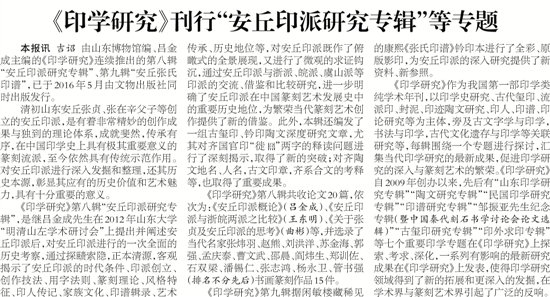 《印学研究》刊行“安丘印派研究专辑”等专题