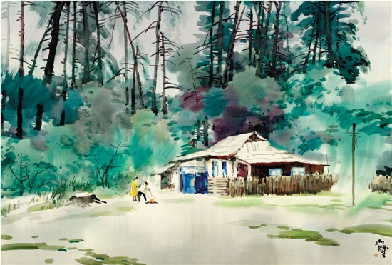 蒋跃 波尔塔瓦的小木屋 水彩 78×108cm