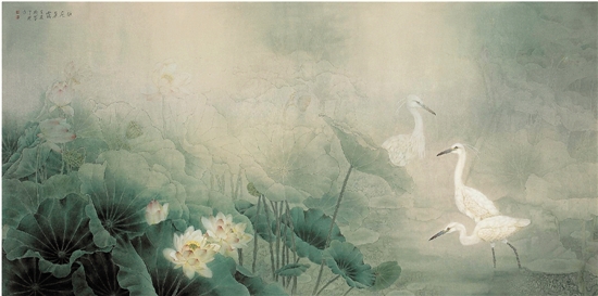 周中耀 洞庭晨霭 120×240cm 纸本设色 2012年