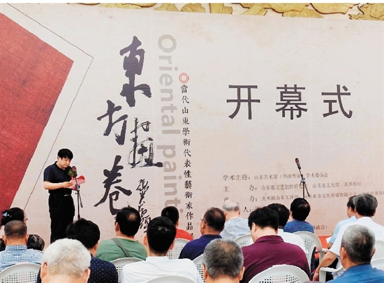 本报济南讯 宋玲 7月19日,“东方画卷——当代山东学术代表性艺术家作品展”在山东省文化馆开幕。展览由山东省文艺创作研究院、山东省文化馆等主办。山东省文联副主席、美协副主席杨枫主持开幕式。