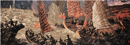 彦涵 百万雄狮渡长江 63.7×182.8cm 1962年 木版套色 中国美术馆藏