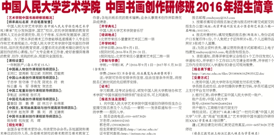 中国人民大学艺术学院 中国书画创作研修班2016年招生简章
