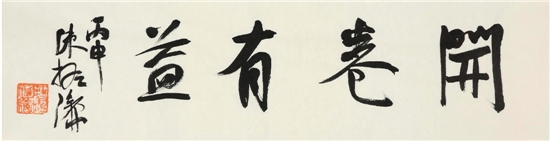 陈振濂 书法 释文:开卷有益 款识:丙申陈振濂。 钤印:陈振濂印信(朱) 尺寸:25×90cm 约2平尺
