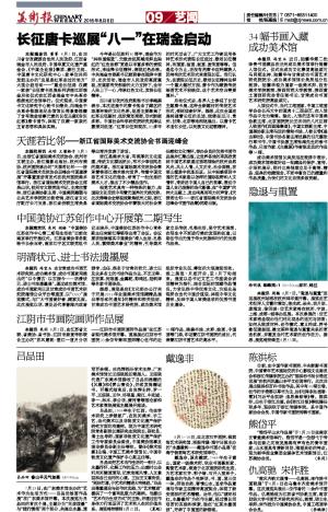 “熊岱平山水作品展”于7月28日在南京玄青堂美术馆举行。熊岱平是一位游弋于传承与创新之间而发展得有声有色的青年画家,山水画具有清新明朗、雅丽灵动的特点。现为新华报业集团全媒体艺术馆副馆长,江苏美协会员。 (朱同)