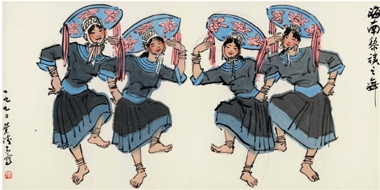 叶浅予 海南黎族之舞 68.5×137.5cm 1990年 中华艺术宫藏