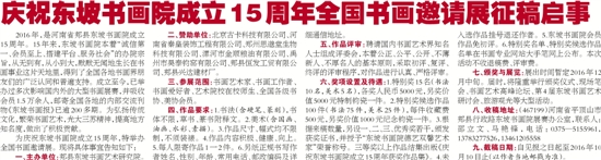 庆祝东坡书画院成立15周年全国书画邀请展征稿启事