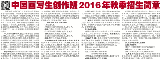 一、课程设置和培训方式:中国画写生 创作班分人物、山水、花鸟三个专业班。课程设置为中国画创作基础训练、写生和主题创作课,主要课程为:(1)中国画创作的发展趋势及流派的形成分析。(2)中国画写意精神及审美。(3)文学艺术修养。(4)中国画语言训练。(5)艺术构成。(6)写生及写生创作。(7)主题创作辅导。学习期间的创作作品完全同步于各类展览的尺寸和规格要求。