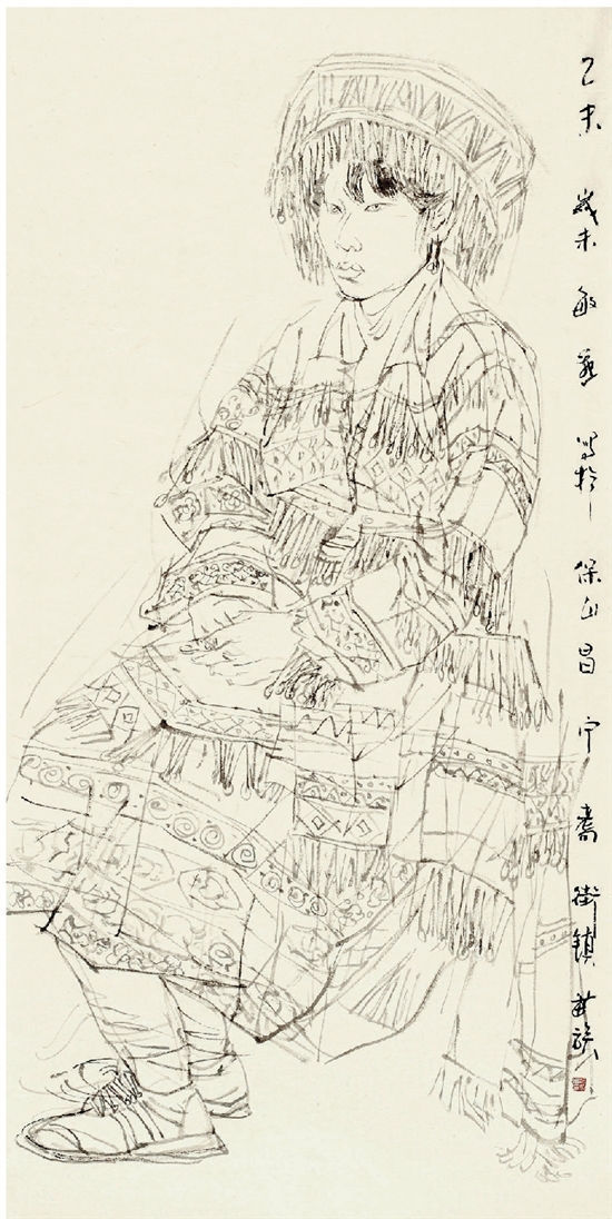范敏燕 花苗族人物 136×68cm