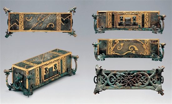 ▶西汉早期 龙形铜架玉枕 长371mm 宽160mm 高114mm