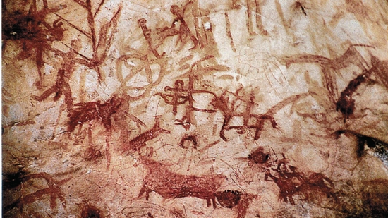 “林中狩猎”中国西藏当雄县纳木错湖扎西岛崖壁画