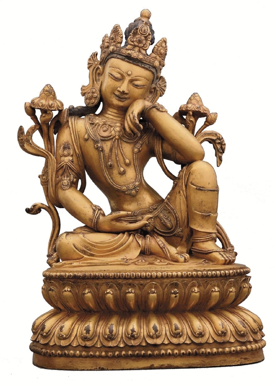 思惟观音菩萨 黄铜鎏金 高29.5cm 明永乐