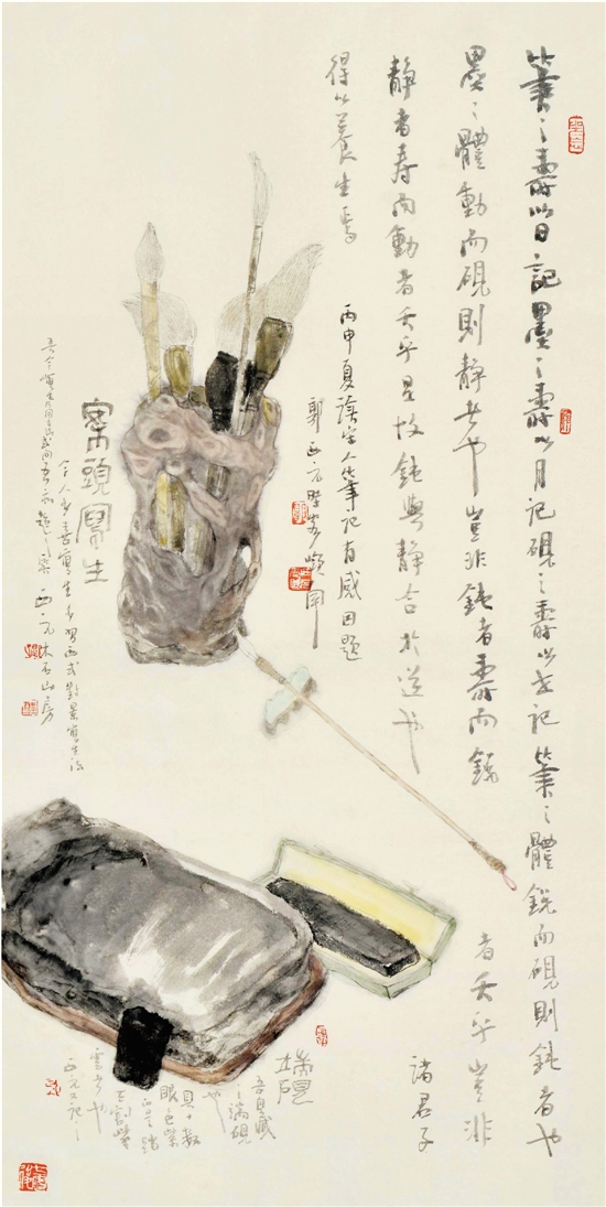 郭西元 笔墨砚与养生 136×68cm 2016年
