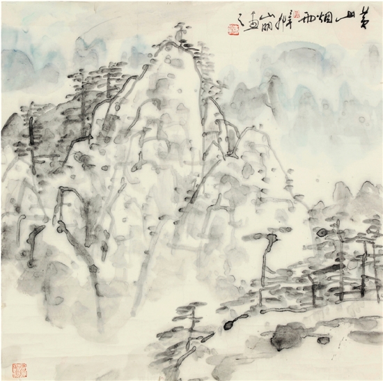 吴山明 黄山烟雨 68×68cm