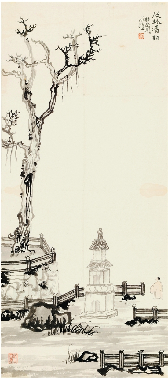 林海钟 疏林清话 69×31cm