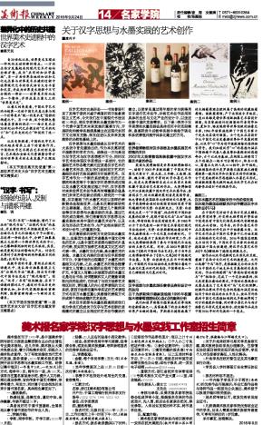 汉字艺术的古典形态——书法曾经引发了发端于欧洲兴盛于美国的西方抽象表现主义艺术,今天我们在中国现代书法运动30年后,将汉字思想和水墨实践作为一个代表中国艺术未来发展的重要方向,开展研究和教学实践便是建立在近现代东西方文化相互交融、相互促进以及未来发展趋势的必然性基础上的。