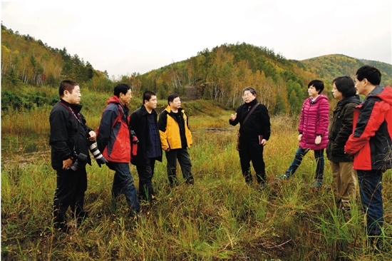 于志学在大兴安岭向冰雪画派弟子讲诉当年探索冰雪画过程
