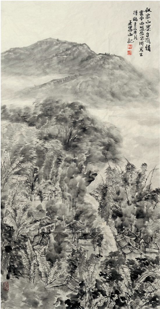 王界山 佤家山寨自有情 136×68cm 水墨