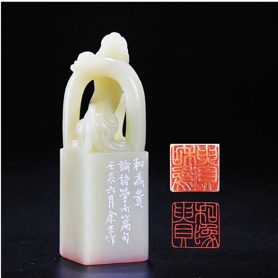 余正 和为贵 青田石 2.2×2.2×7.5cm