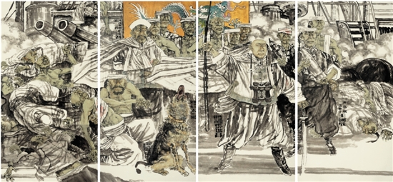 周京山 甲午风云 180×380cm(现存中国甲午战争博物院)