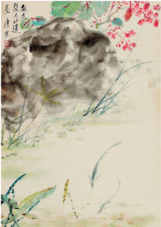 张大壮画、唐云题 景色 52×37cm