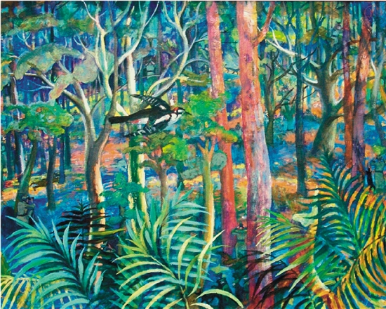 汉斯·迈耶-弗雷特 林中啄木鸟 布上油画 80×100cm 1980年