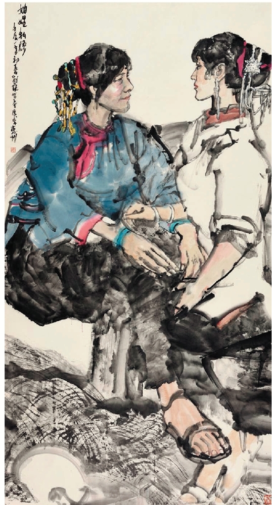 刘健 妯娌私语 180×97cm 中国画 2016年