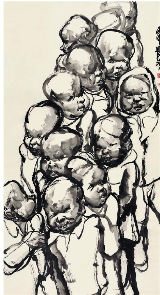 曹宝泉 大山里的孩子们 180×97cm 中国画 2016年