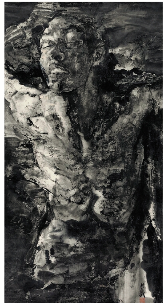 黄骏 挣扎中的男人 180×97cm 中国画 2010年