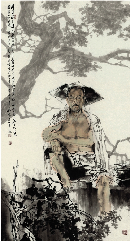 孔维克 马牧池写生——村头休息的老汉陈建新