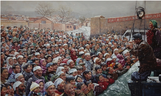 郭震乾 马桦 正月里——宁夏话剧团文化“大蓬车”送戏到山村 180×298cm 2008年 油画